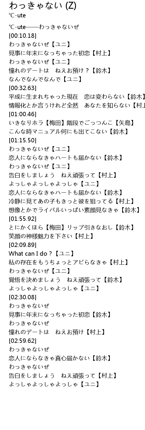 | [00:08.94] | ℃-ute——わっきゃないぜ |
