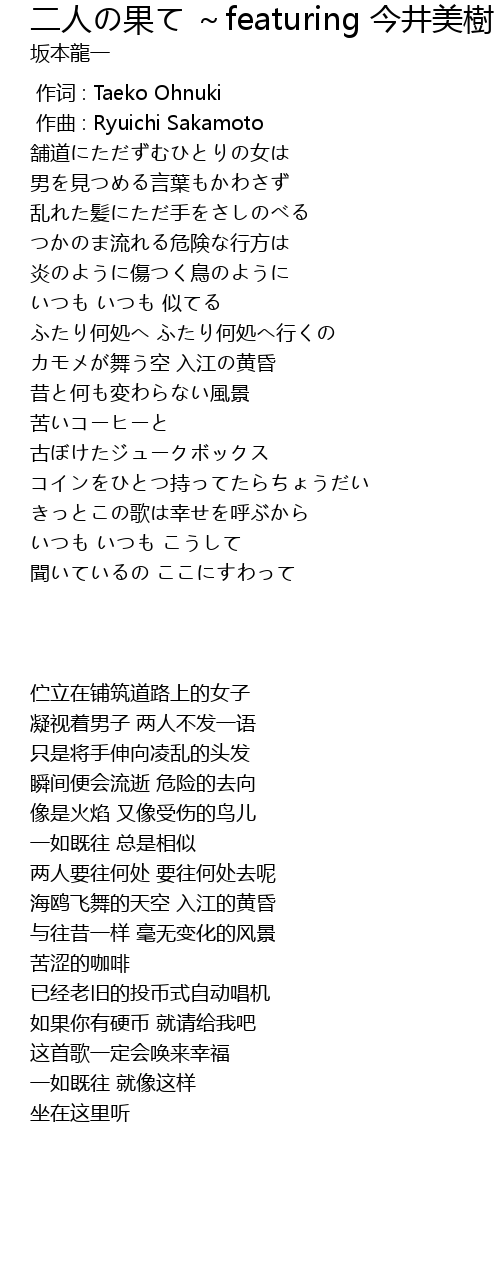 | [00:01.000] | zuo qu : Ryuichi Sakamoto |