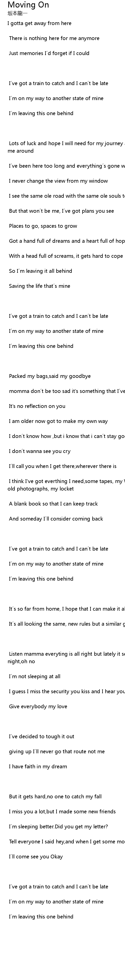 | Song | Moving On |