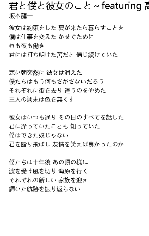 | Song | 君と僕と彼女のこと~featuring 高野寛 |