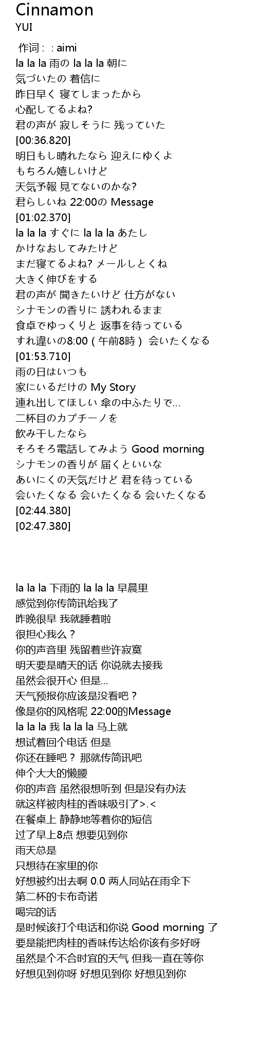 | [02:20.040] | シナモンの香りが 届くといいな |