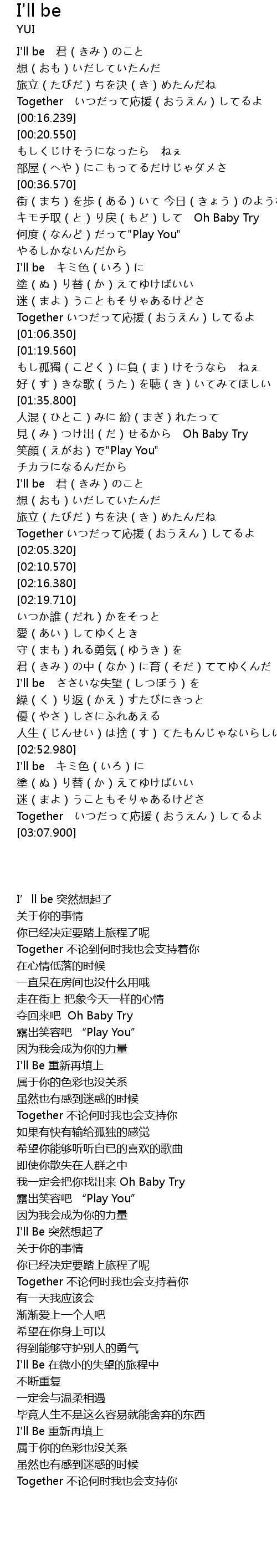 | [00:02.290] | I'll be 君(きみ)のこと |