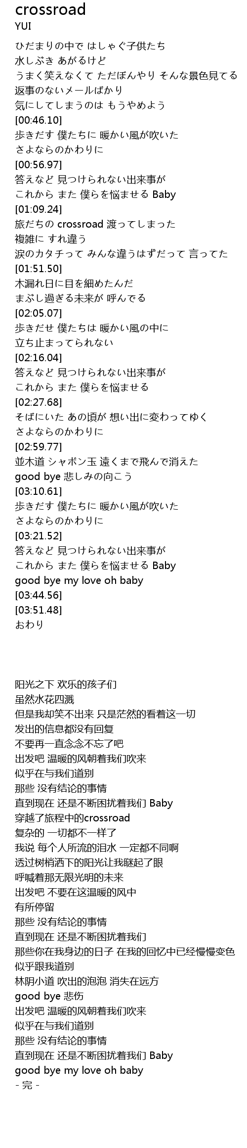 | [01:31.42] | 旅だちの crossroad 渡ってしまった |