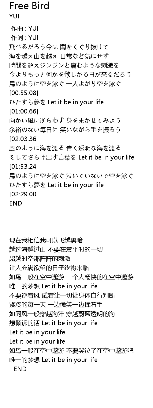 | [02:06.32] | 鳥のように空を泳ぐ 泣いていないで空を泳ぐ |