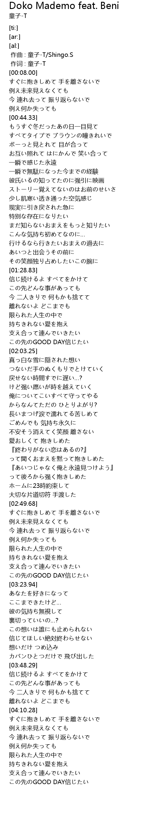 | [00:00.00] | 作曲 : 童子-T/Shingo.S |