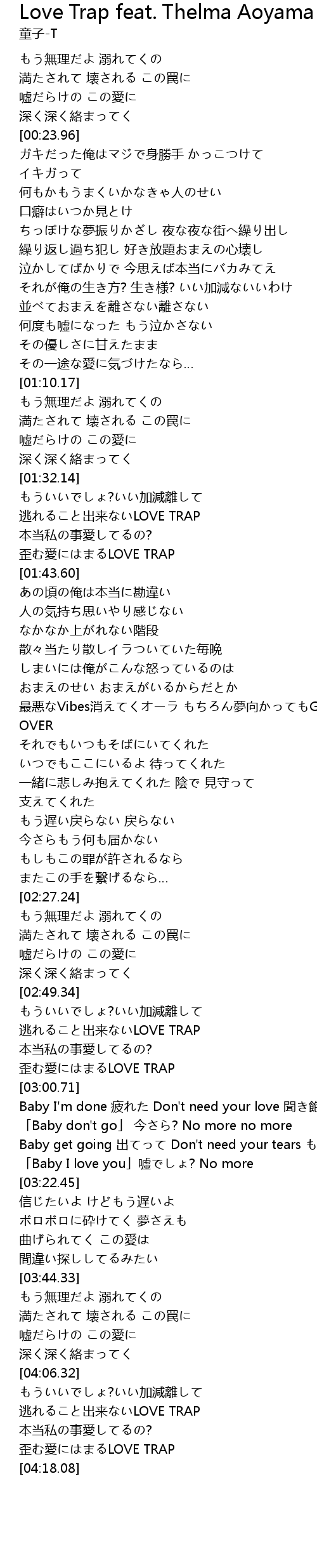 | [01:41.16] | 歪む愛にはまるLOVE TRAP |