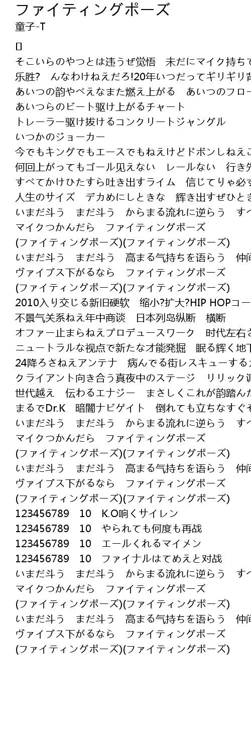 | あいつの韵やべえなまた燃え上がる あいつのフローやべえな腕がなる | |