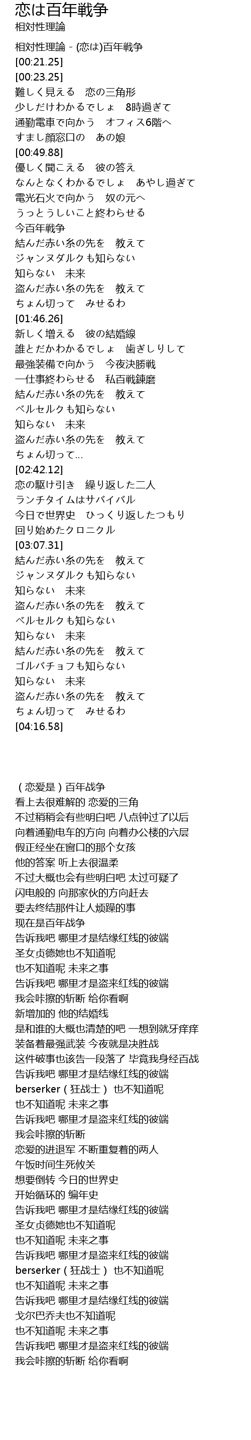 | [00:00.00] | 相対性理論 - (恋は)百年戦争 |
