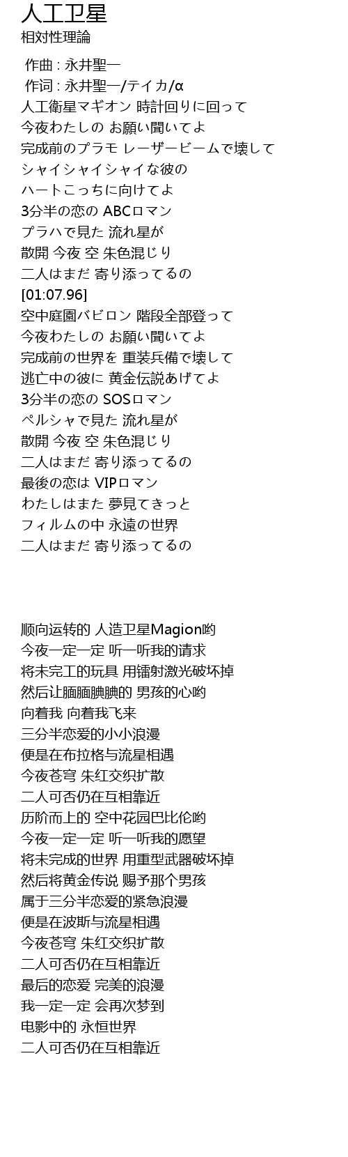 | [00:23.44] | 人工衛星マギオン 時計回りに回って |