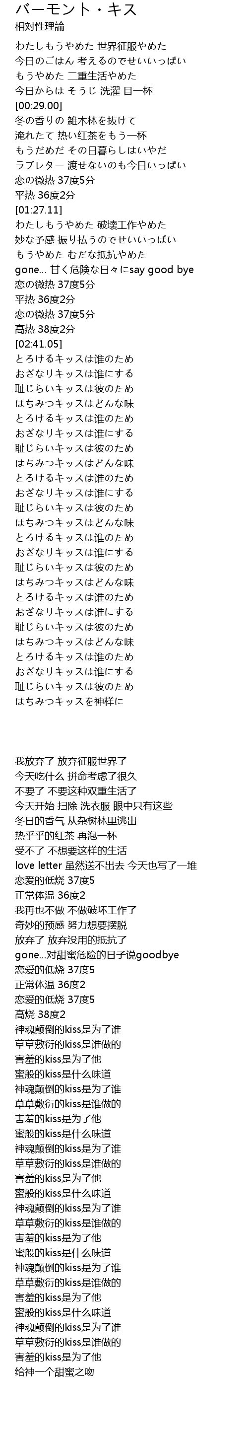 | [03:57.36] | とろけるキッスは谁のため |