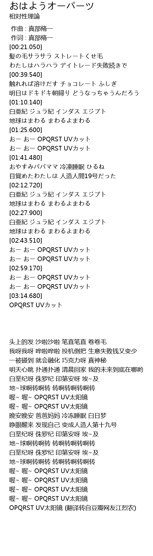 | [02:59.590] | おー おー OPQRST UVカット |