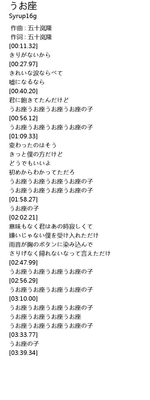 うお座うお座うお座うお座の子 |