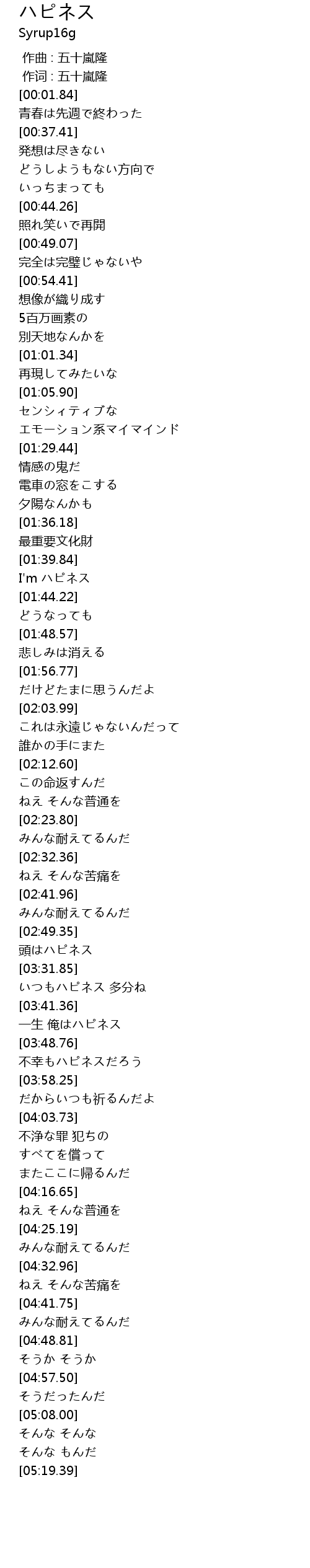 | [00:00.00] | 作曲 : 五十嵐隆 |