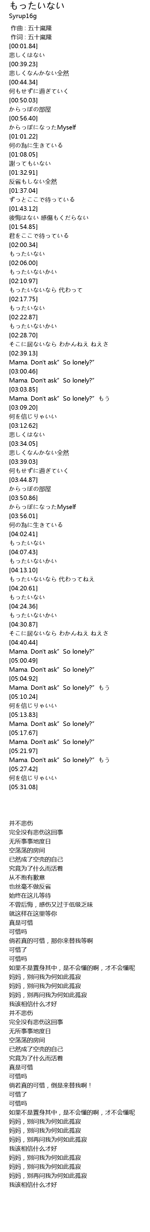 | [05:23.76] | Mama. Don't ask”So lonely?”もう |