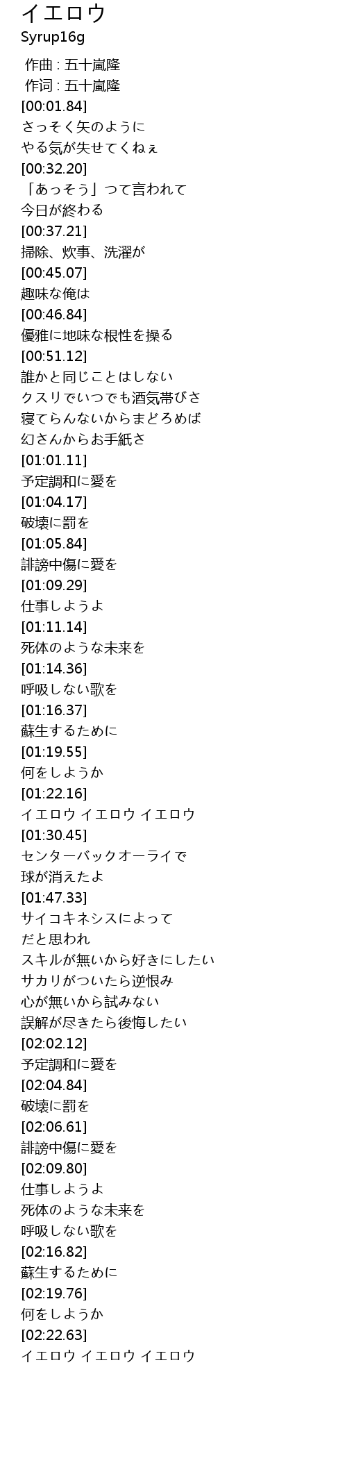 | [01:24.80] | イエロウ イエロウ イエロウ |