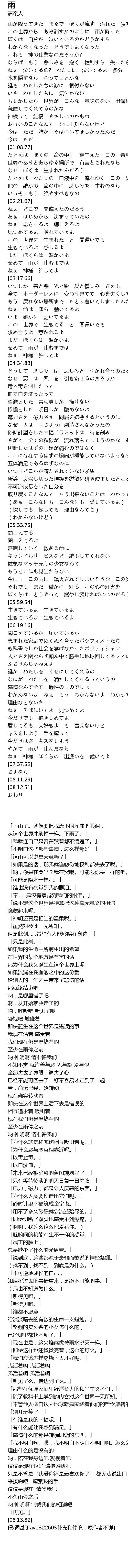 | [00:13.51] | この世界から もみ消すかのように 雨が降った |