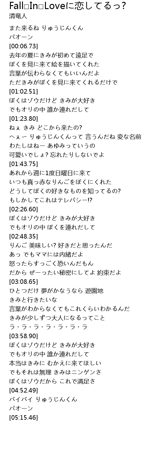 | [04:00.44] | ぼくはゾウだけど きみが大好き |