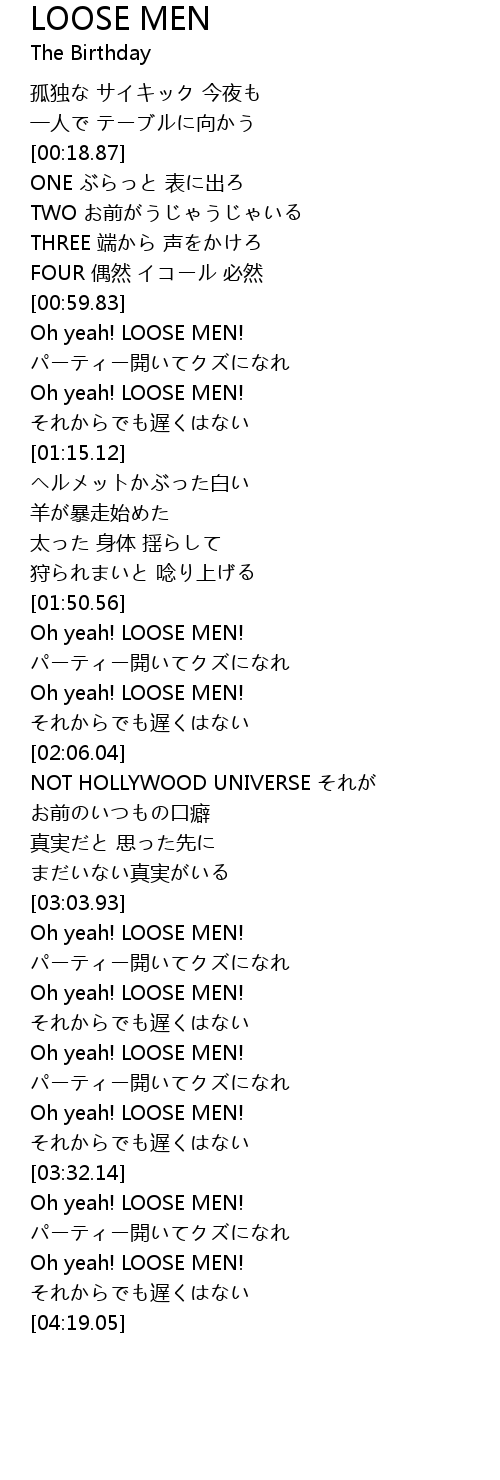 | [03:23.45] | Oh yeah! LOOSE MEN! |