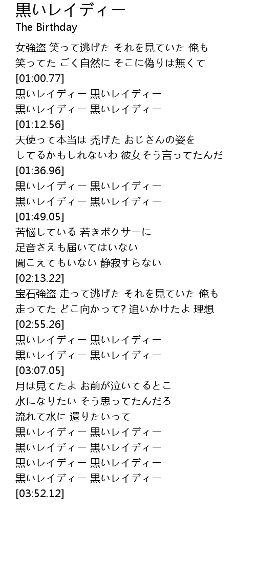 | [03:02.18] | 黒いレイディー 黒いレイディー |