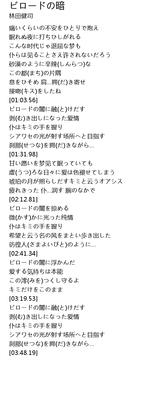 | [03:01.07] | ビロードの闇に浮かんだ |