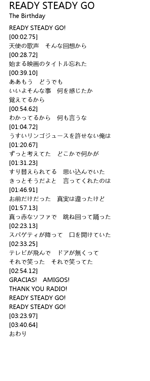 | [02:17.42] | 真っ赤なソファで 跳ね回って踊った |