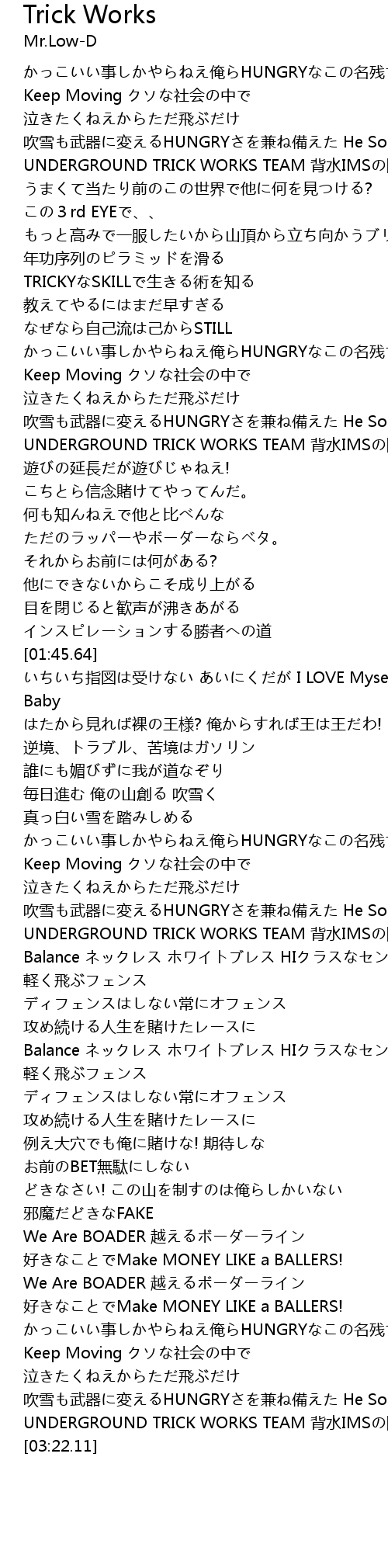 | [02:19.51] | UNDERGROUND TRICK WORKS TEAM 背水IMSの陣 |