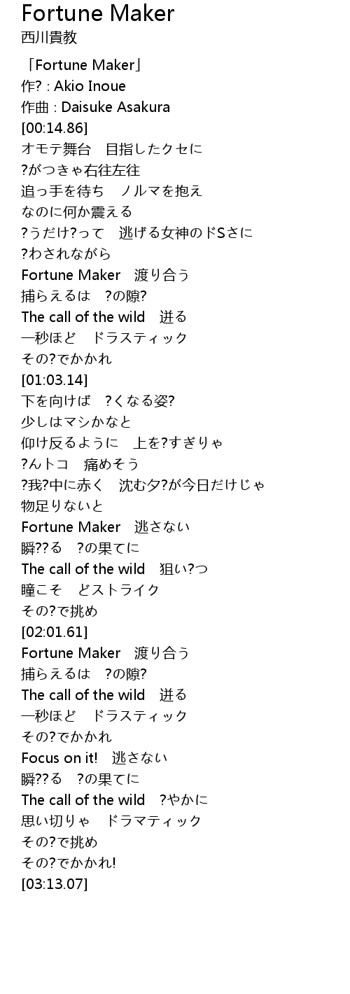 | [00:07.86] | zuò qǔ Daisuke Asakura |