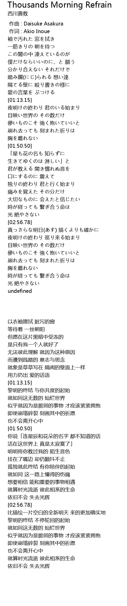 | [03:15.13] | 夜明けの終わり 巡り来る始まり |