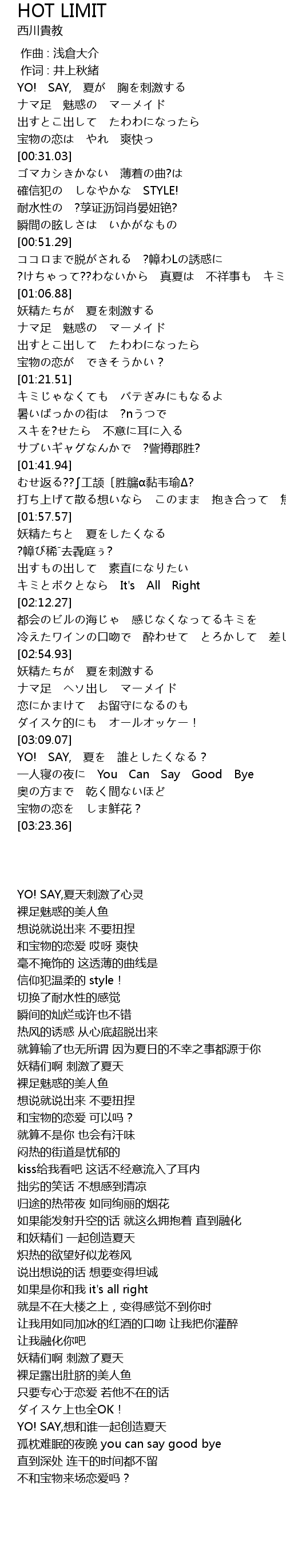 | [00:17.02] | YO! SAY, xia xiong ci ji |