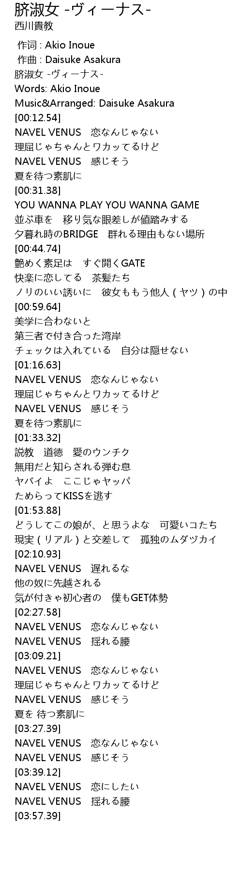 | [03:03.88] | NAVEL VENUS 揺れる腰 |