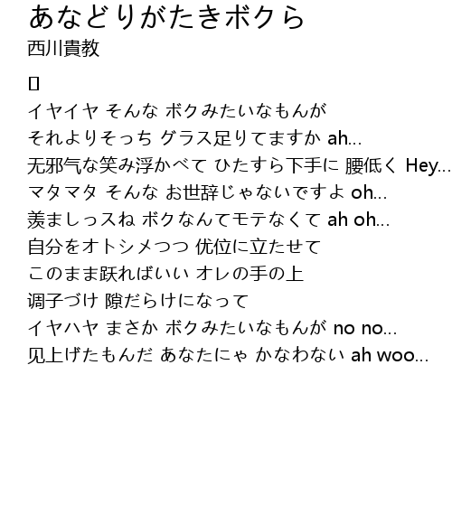 | 见上げたもんだ あなたにゃ かなわない ah woo… |