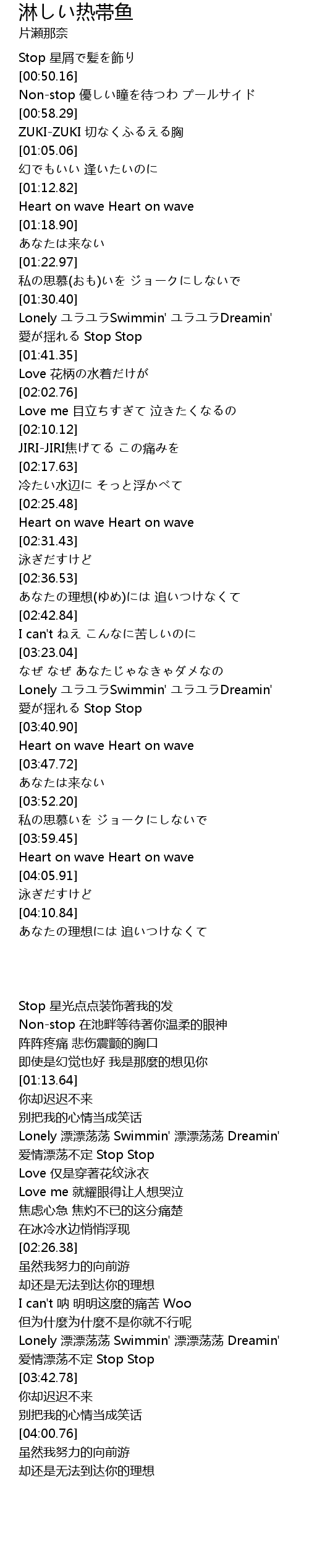 | [00:51.48] | Non-stop 優しい瞳を待つわ プールサイド |
