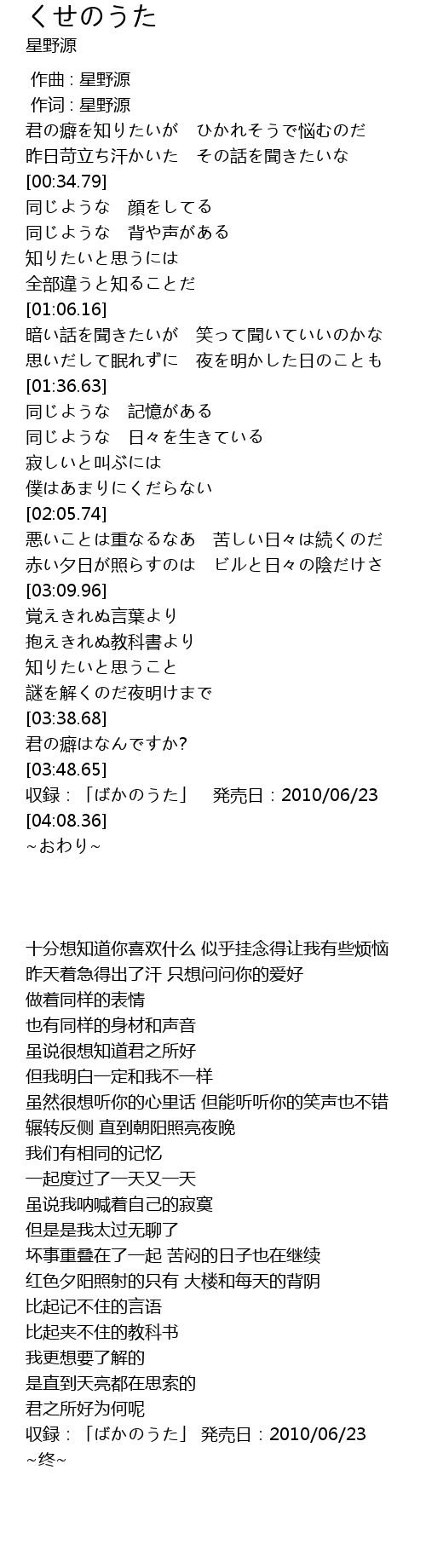 | [03:57.84] | 収録:「ばかのうた」 発売日:2010/06/23 |