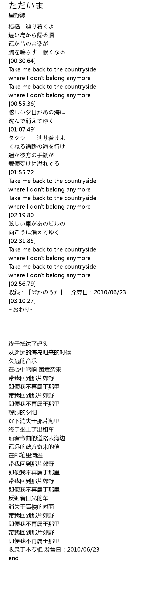 | [03:07.25] | 収録:「ばかのうた」 発売日:2010/06/23 |