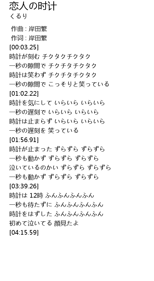| [01:38.91] | 時計は止まらず いらいら いらいら |