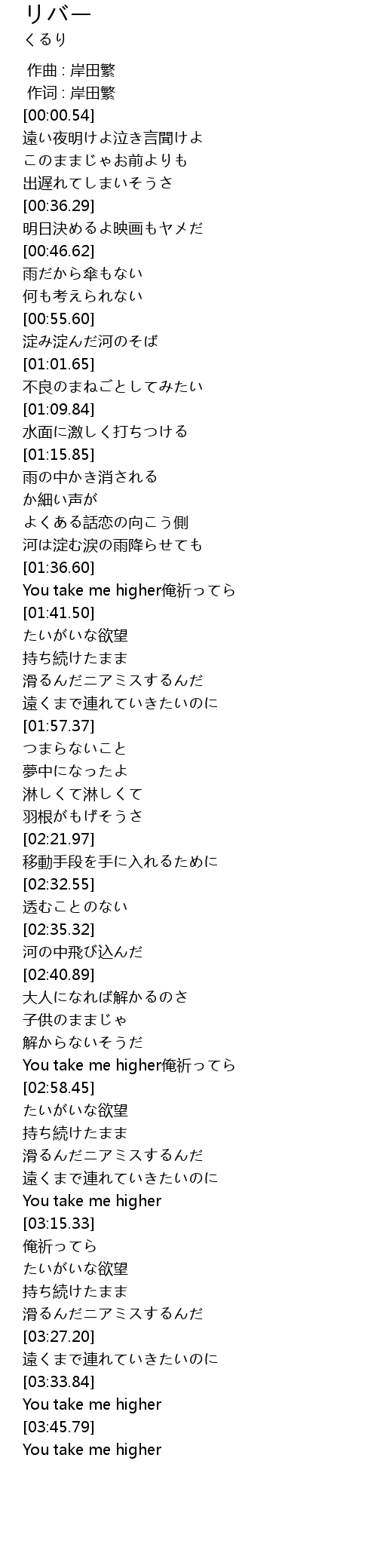 | [01:31.13] | 河は淀む涙の雨降らせても |