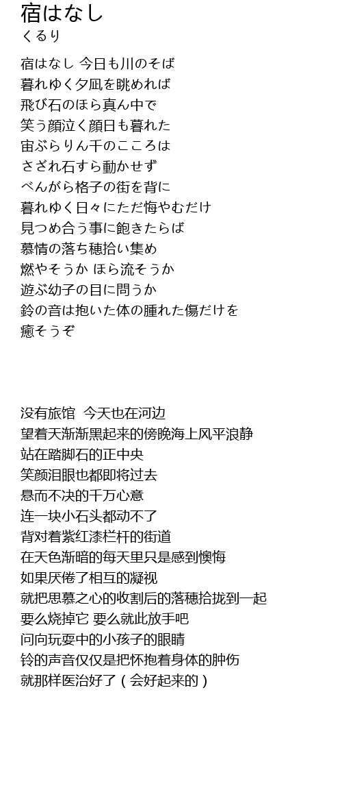 | [00:26.15] | 宿はなし 今日も川のそば |
