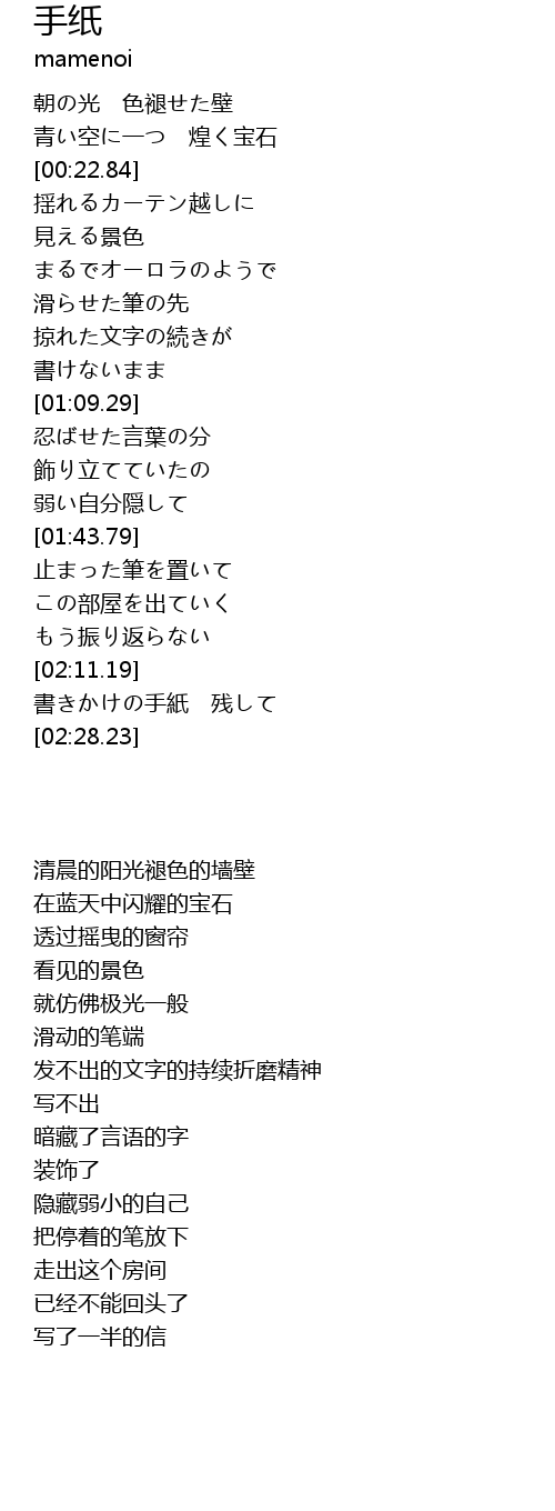 | [00:01.48] | 朝の光 色褪せた壁 |