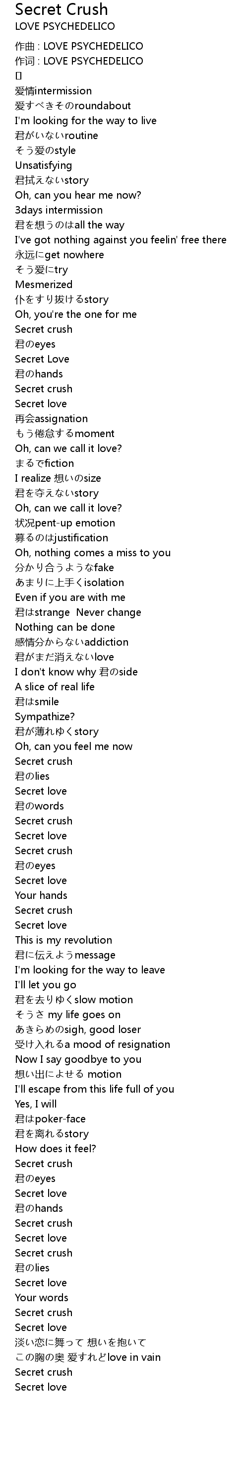 | 作词 : LOVE PSYCHEDELICO | |