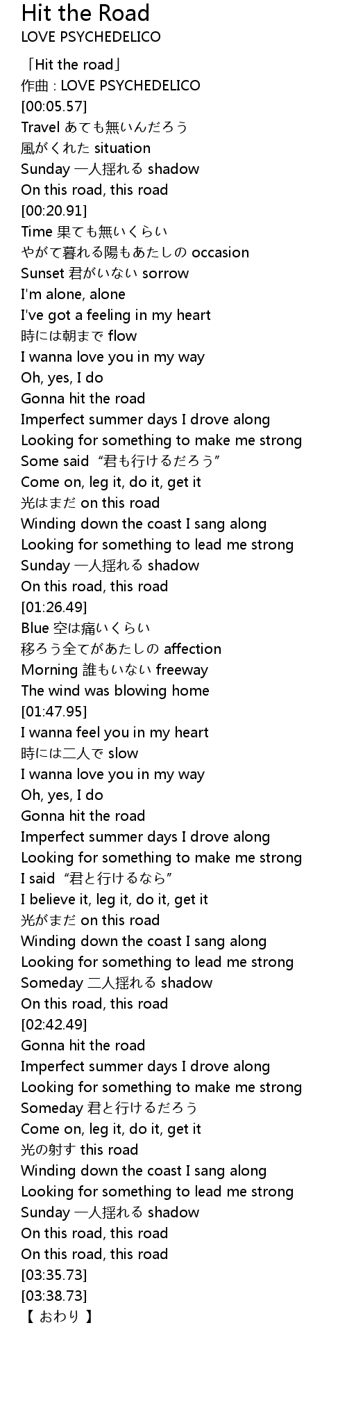 | [00:03.57] | zuò qǔ LOVE PSYCHEDELICO |