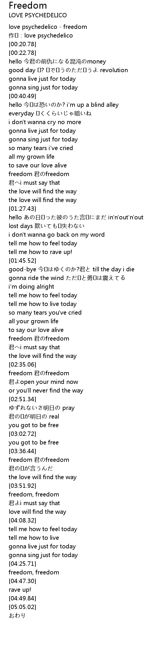 | [02:20.22] | freedom jūn freedom |