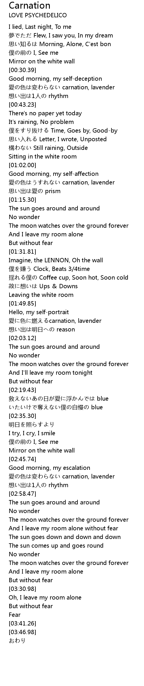 | [01:54.22] | 愛に色に燃えるcarnation, lavender |
