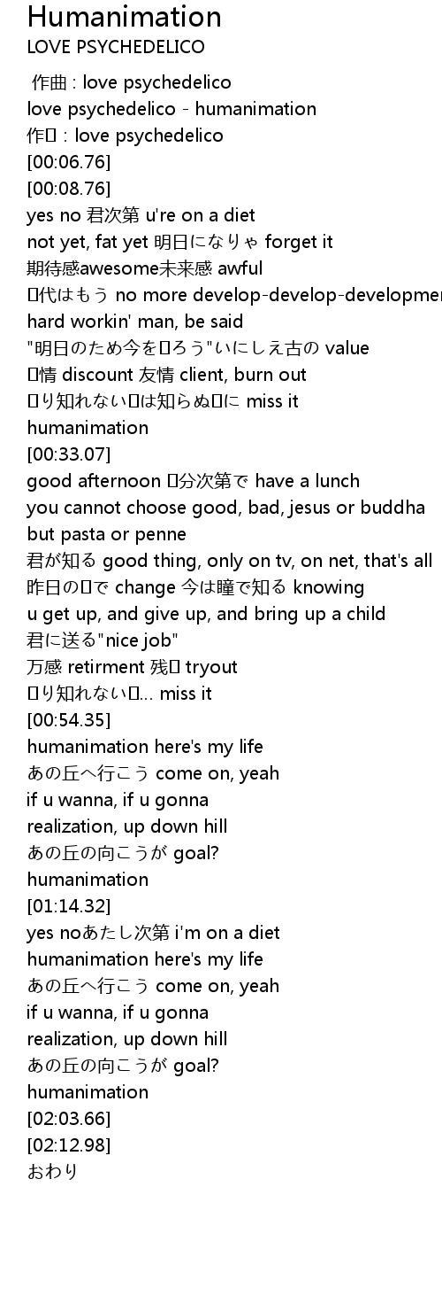 | [00:00.00] | love psychedelico - humanimation |