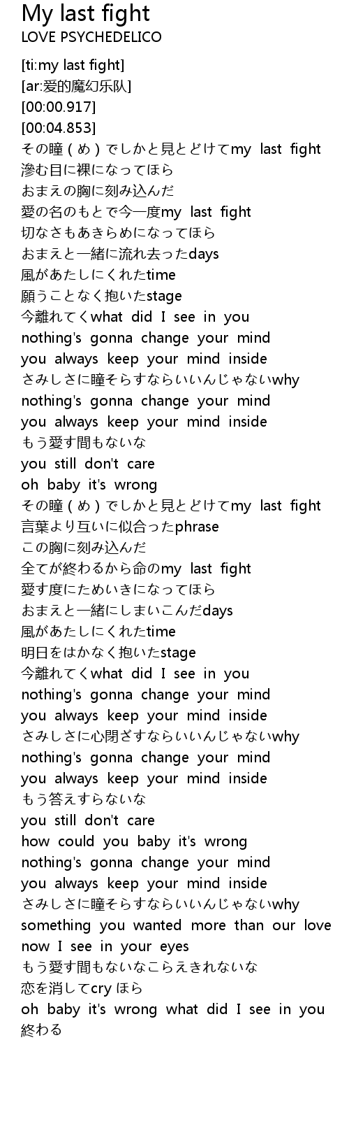 | [00:19.921] | 愛の名のもとで今一度my last fight |