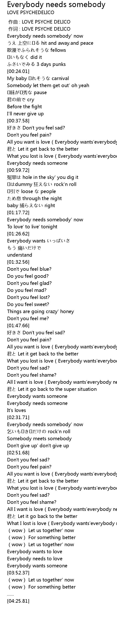 | [00:41.17] | All you want is love Everybody wants' everybody needs |