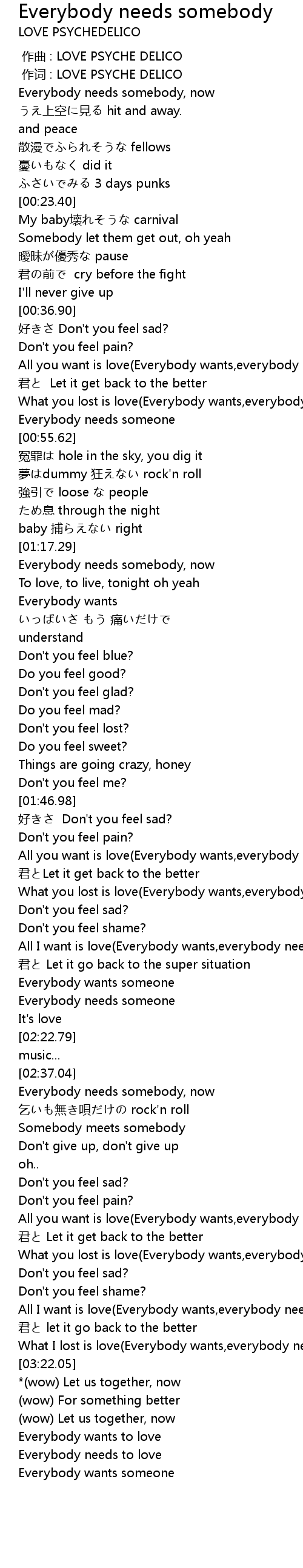 | [02:54.87] | All you want is love Everybody wants, everybody needs |