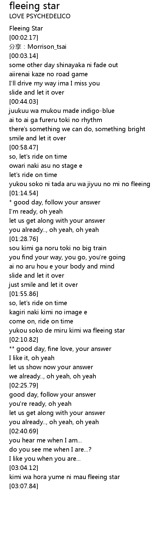 | [02:07.43] | yukou soko de miru kimi wa fleeing star |