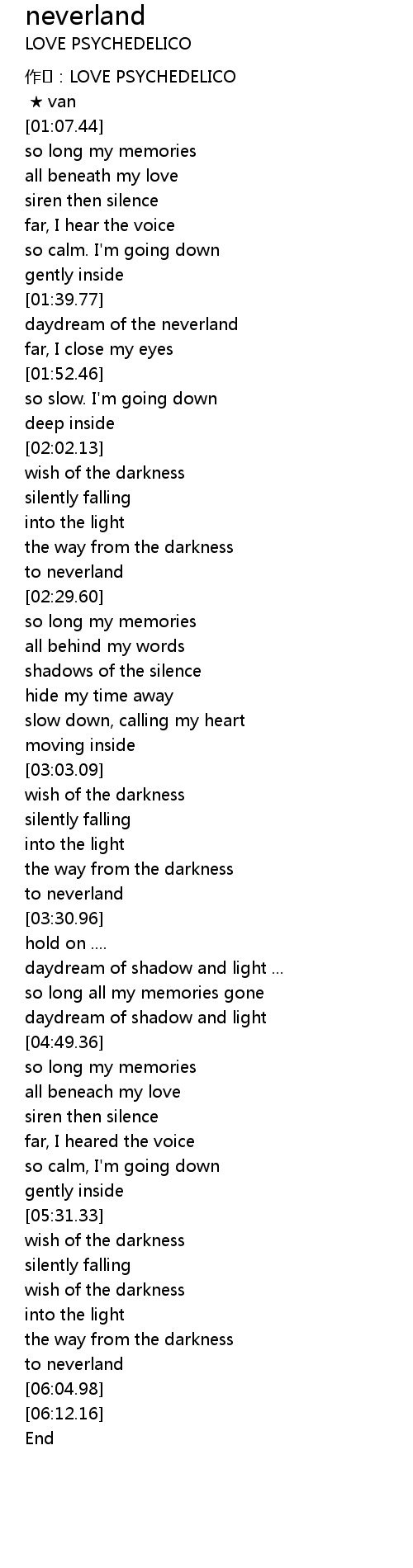 | [01:01.44] | 作�:LOVE PSYCHEDELICO |
