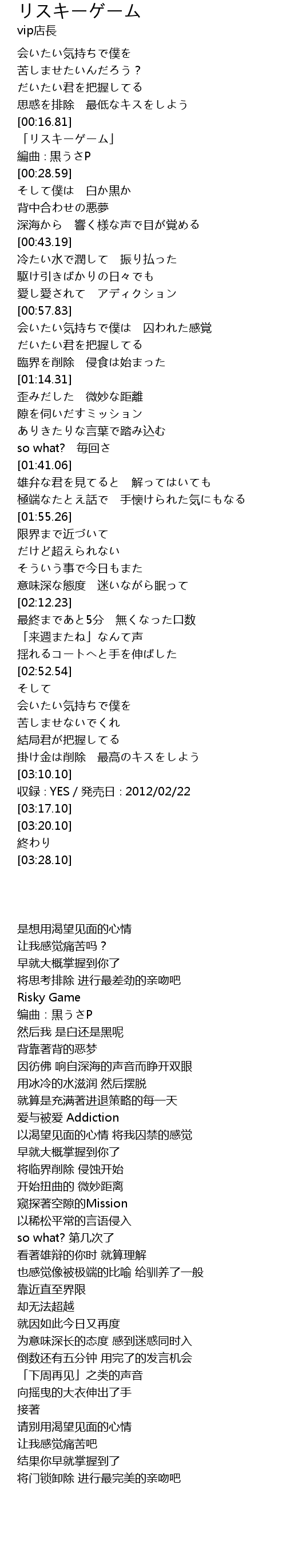 | [03:04.51] | 掛け金は削除 最高のキスをしよう |