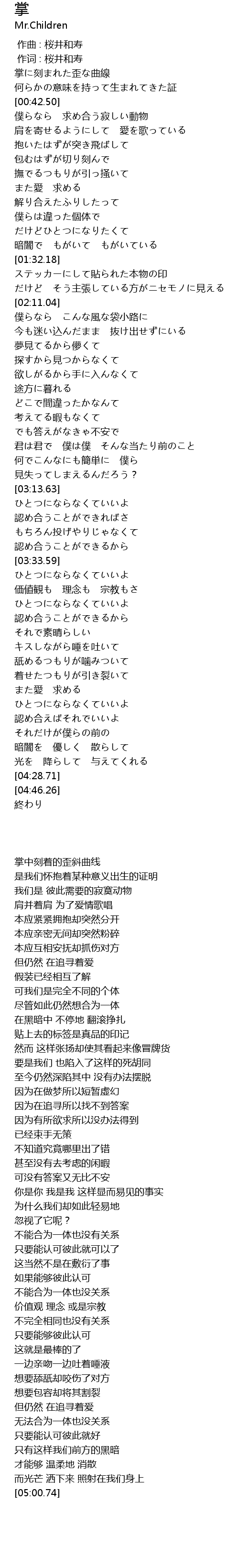 | [00:01.00] | 作词 : 桜井和寿 |